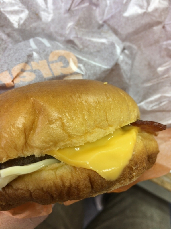 で、おれも呼び出されて、たべた。グランベーコンチーズ。なるほど、パンがふわふわしている。肉は……まあ厚い。玉ねぎはいい感じだ。なかなかいい感じだ。