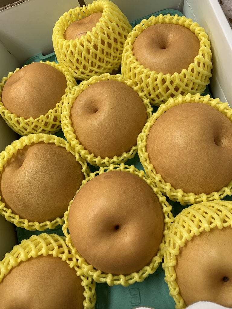 というわけで、ナシである。船橋方面だからといってふなっしーかといえば違った。熊本のナシである。あまりイメージがわかない。が、新高梨という品種であるらしい。ともかく、デカい! これには圧倒された。ズシリと重く、ともかくデカいのである。「おお、すげえな!」と思う。