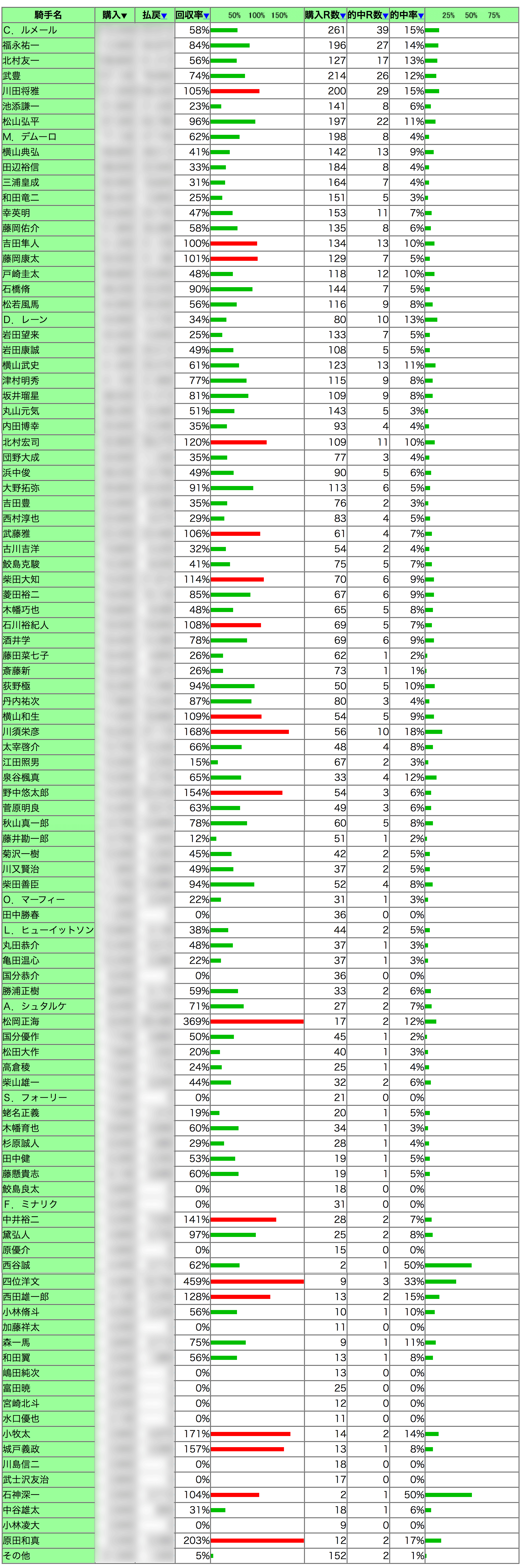 クソ長い騎手別。クリックすると大きい画像でご覧いただけます。いや、見なくていいよ。