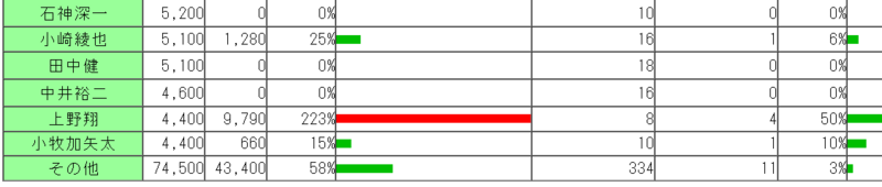 えーと、騎手別だけMacでスクリーンショット撮ったやつ、回収率までモザイクかけちゃったので、いまWindowsで撮った。金額はめんどくさいのでもうモザイクいいや。これだと総額割り出せないし。
