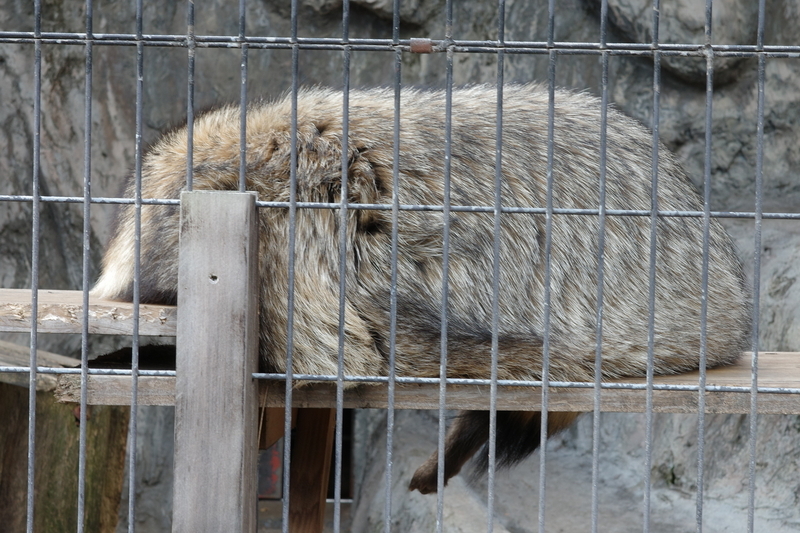 これも狸寝入り。毛並みをよく撮れているだろうか。まあ、動物園きたら動物撮っちゃうよな。