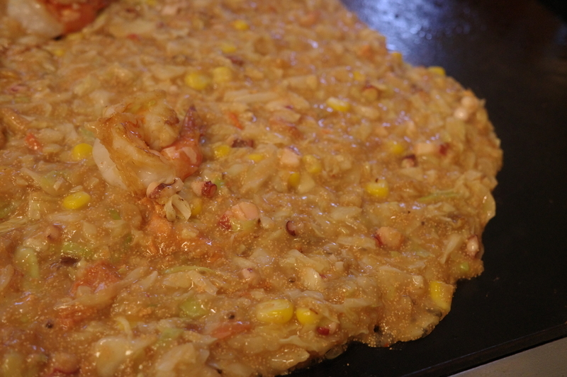 海鮮もんじゃin月島。セルフの店だったので、なにやらもごもごやっていると、「やりましょうか?」と女将みたいな女性店員。任せます。