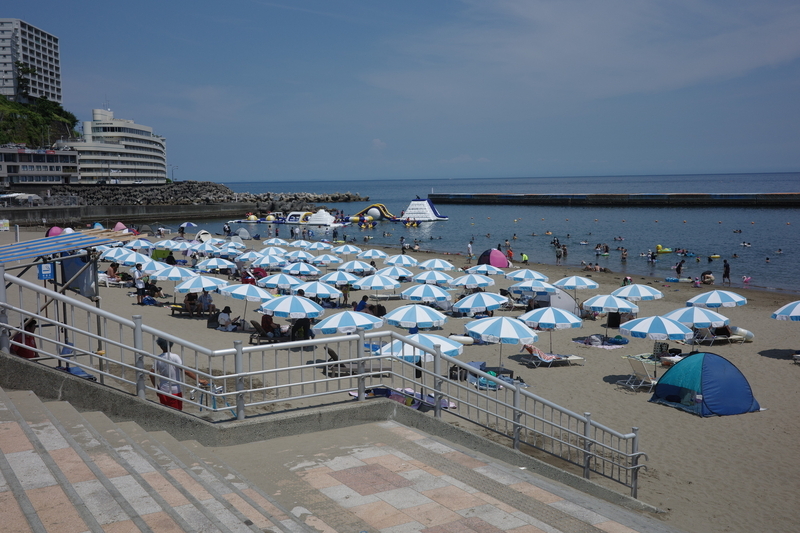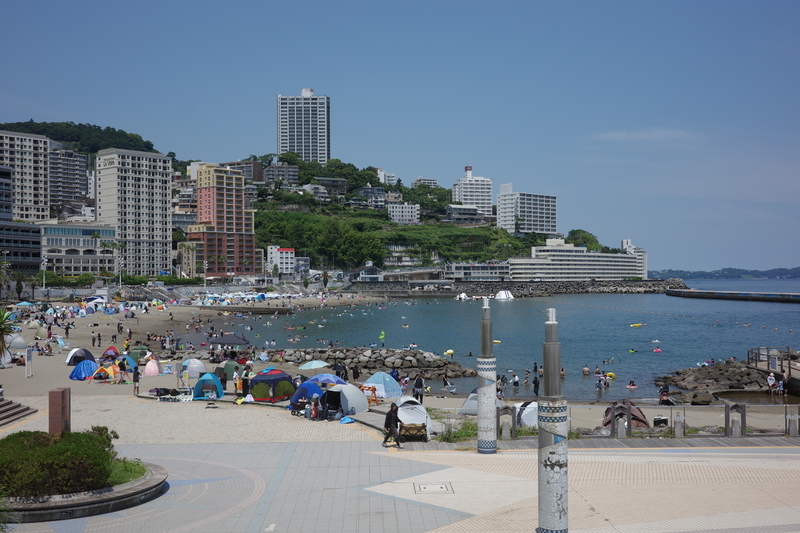 北上していくと、熱海のビーチがあった。人工の砂浜らしく、あまり大きくない。しかし、砂は熱い。人も多い。