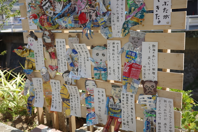 で、このあとだが、肝心の道の写真がなかった。要するに「熱海秘宝館からホテルニューアカオまで歩いていけるのか?」ということだ。答えはイエスだ。熱海城の前にバス停とかあって、下り坂の車道があるので、そこを歩いていけばよい。途中、すれ違った夫婦らしき人に「こんにちは! この道で秘宝館に行けますか?」と聞かれたが、「行けますけれど、坂がきついですよ!」と答えた。そうだ、けっこうな急坂だ。なので、「熱海秘宝館からホテルニューアカオに歩いていけるが、ホテルニューアカオから熱海秘宝館に歩いていくのはおすすめしない」だ。とくに夏は。いや、夏は。