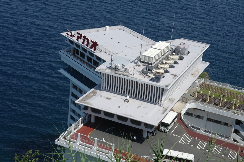というわけで、目的地はホテルニューアカオ。聞いたことある人はそういうものだというイメージがあるだろうし、とくに説明はしない。昭和から帰ってきた全室オーシャンビューの超巨大ホテル、これである。